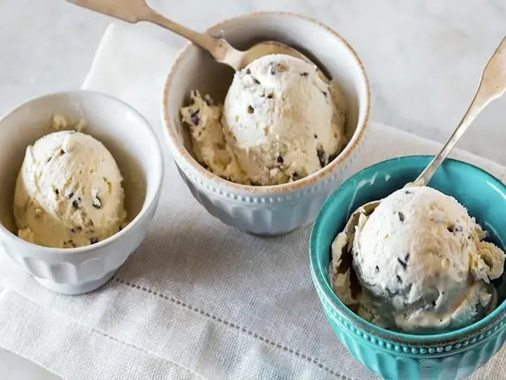 Tatlıyı dondurucudan çıkarın ve içinden bir kaşık geçirin; 2 dakika, 5 dakika ve 8 dakika sonra. İlk başta, direnç gösterir ve sert parçalar halinde kırılır. Sonra daha iyi bir an gelir; kaşık hafifçe kayar ve kaldırılan kreması şeklinin bozulmadan kalır.